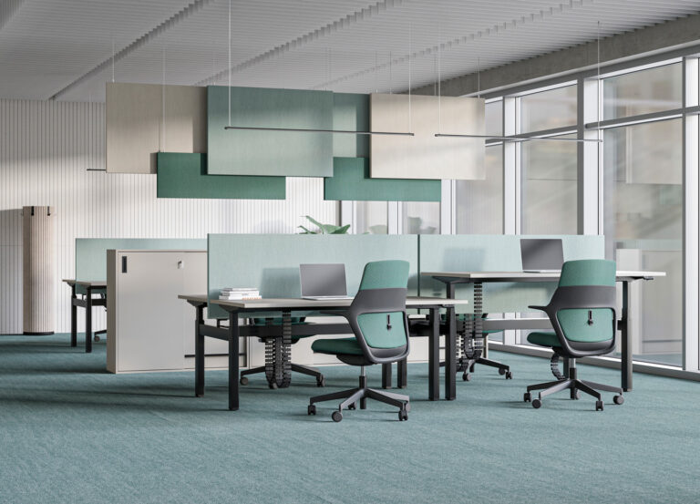 Diese Trennwände sind auch in verschiedenen Oberflächenvarianten erhältlich, darunter Stoff, Glas und Holz, sodass sie perfekt mit Ihrer Büroeinrichtung harmonieren. Ihr schlankes und modernes Design macht sie auch ideal zur Verbesserung der Gesamtausstattung des Büros. Mit akustisch wirksamen Trennwänden können Teammitglieder ohne Störung durch externe Geräusche arbeiten, was zu einer erhöhten Konzentration, gesteigerter Produktivität und einem gesünderen Arbeitsumfeld führt.