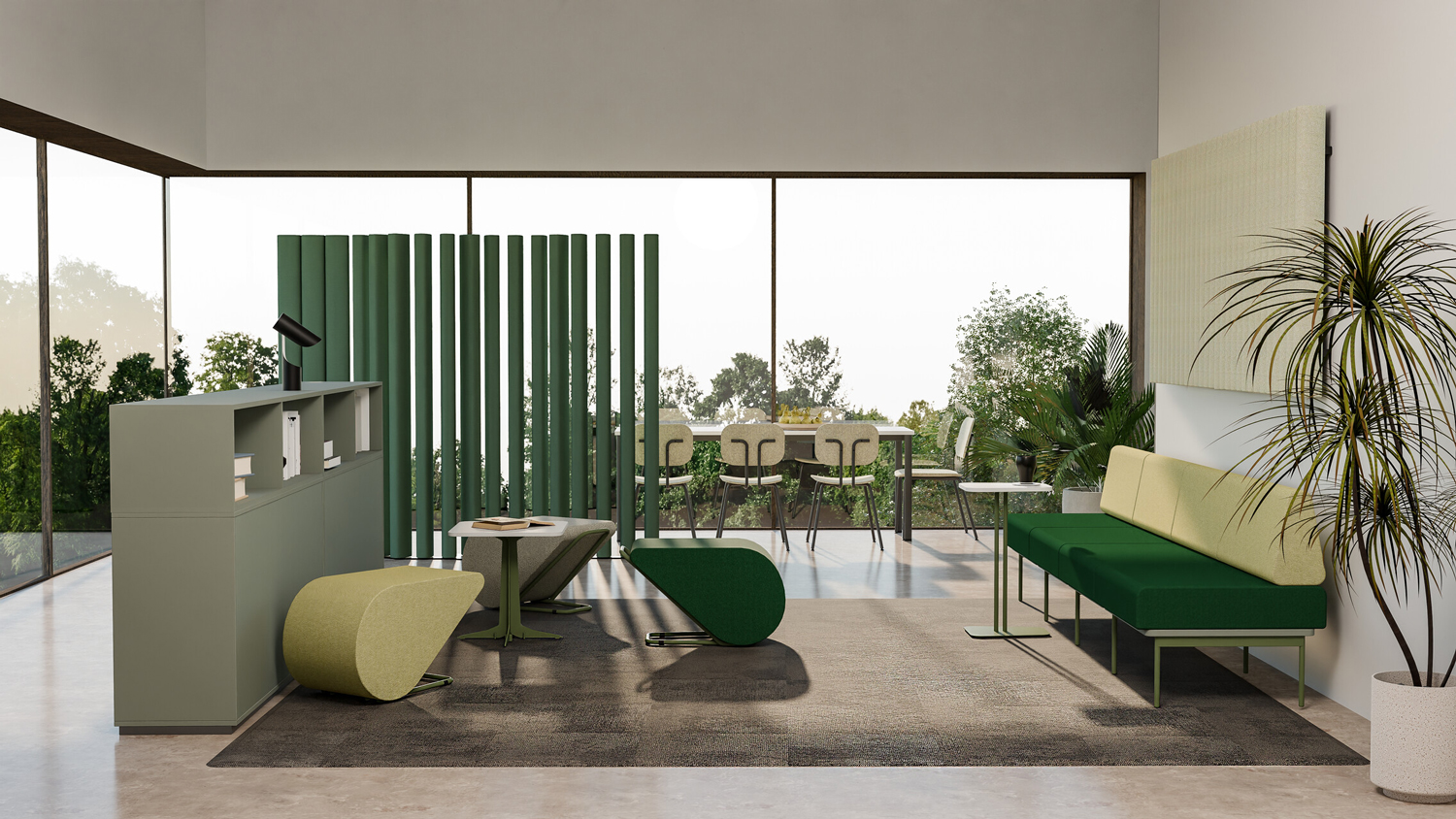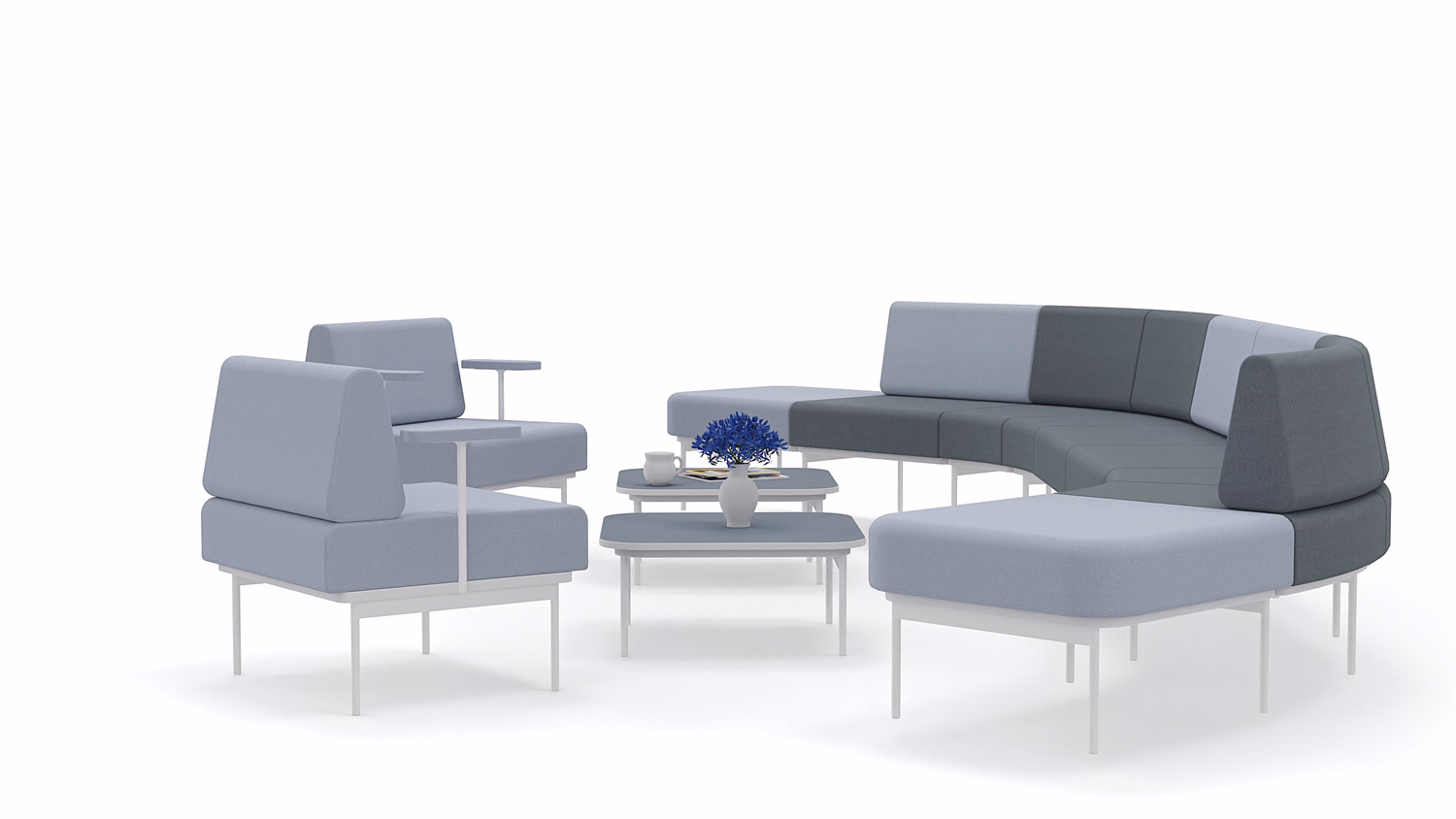 • Flexibilität: Ändern Sie die Konfiguration spielend leicht von einer langen Sitzreihe für Konferenzen zu intimen Kommunikationsinseln.